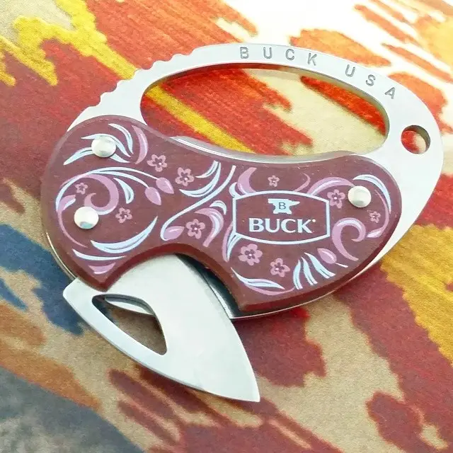 For the ladies.. the Buck Paperstone Metro Red model 3300. Fashionable and functional: knife, bottle, & can opener all in one. Such a stylish little accessory that can easily attach to your keyring or bag! Check out our line at www.Hand-Tools.com