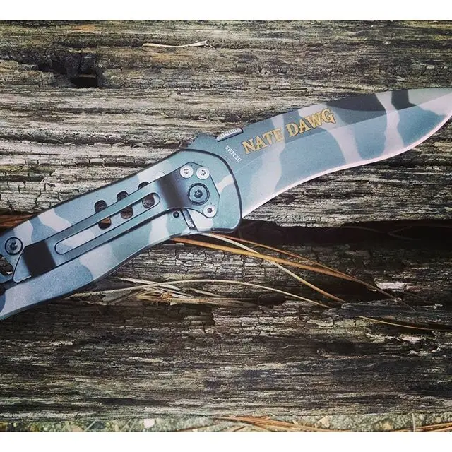 12145284_1512397745745027_1205661888_n Published October 30, 2015 at 640 × 640 in Smith and Wesson Camoflauge Frame Lock Recurve Knife SWFL2C. Engraved Smith and Wesson Camoflauge Frame Lock Recurve Knife SWFL2C. Engraved with God’s of War Font. Black and white camo print on black blade and handle. Continue reading →
