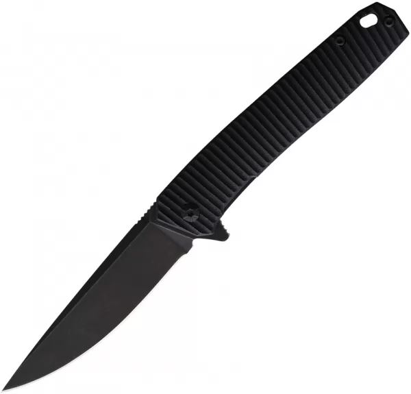 3.75" (9.53cm) closed. 2.75" (6.99cm) black coated stainless blade. Black grooved G10 handle. Extended tang. Lanyard hole. Pocket clip. Plain blade. Boxed.