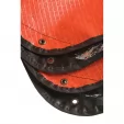 Dimensions: 7' x 5'. Heat reflective and waterproof. Windproof. Highly visible orange exterior. Metal grommets and reinforced edges. Boxed with hanging tab.