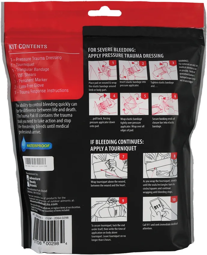 Adventure Medical Trauma Pak III outdoor gear AD20640298 on sale now for $57.49. UPC code 707708002984. There are 8 in stock. Made in USA.
