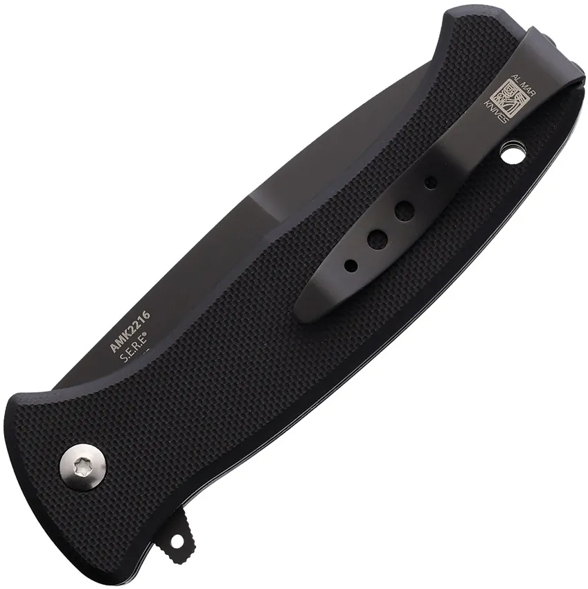 $213.00$159.75Al Mar AMK2216 Item Description:The Al Mar SERE 3 Linerlock Black (BRK-AMK2216) embodies rugged dependability in a compact, everyday carry knife. Constructed with premium materials, including a black-coated AUS-8 stainless steel blade and durable black G-10 handle scales, this knife provides exceptional grip and corrosion resistance. Its secure liner lock mechanism ensures safe and reliable blade deployment, while the slim profile and lightweight design make it comfortable to carry all day. A must-have tool for demanding tasks, the SERE 3 provides a superior cutting edge for any adventure.