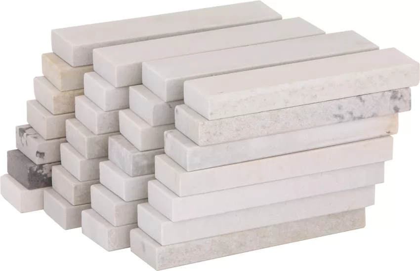 Master culinary excellence with the Soft Arkansas Stones 28 Pieces (AC168), crafted by Arkansas Sharpeners. These stones seamlessly enhance any knife collection, providing a refined sharpening experience. Each stone boasts a unique grit range, from coarse to extra-fine, empowering you to achieve unparalleled sharpness on all your blades. Whether you're a seasoned chef or a home enthusiast, these stones will transform your knives into precise and efficient cutting tools, ensuring flawless slicing and dicing every time. Measures 4" x 1" x 3/8". Soft Arkansas novaculite sharpening stone. The most versatile for general purpose sharpening. Includes 28 stones. Measurements are approximate. Stones may vary in size.