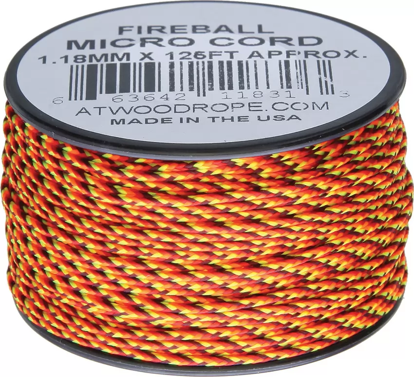 1.18mm diameter. Good for jewelry makers, backpacks, emergency kits, bracelets, lanyards, key chains, and much more. Comes on a small reusable plastic spool. Color: Fireball (dark red, orange, yellow). 125 ft. Nylon construction. Bulk packed.