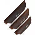 Will fit knives up to 10.25" overall with a handle circumference of approximately 3.75". Leather construction. Color: Brown. Bulk packed.