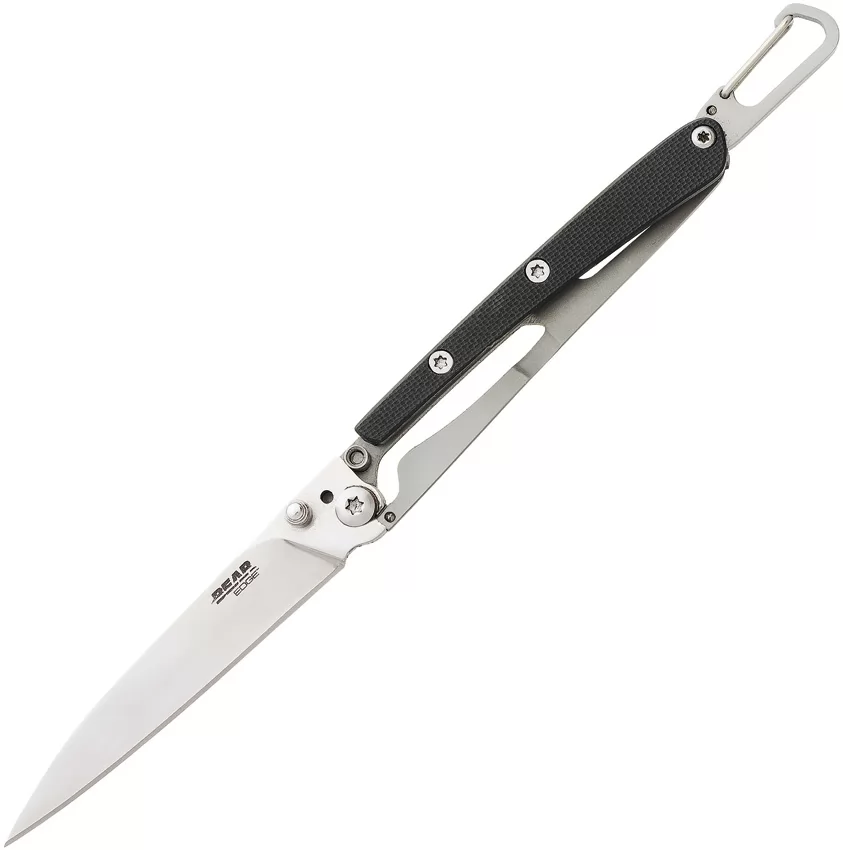 The Bear Edge BRK-BC61526 Minimal Framelock offers a sleek, practical design built for everyday carry. Featuring a black-oxide coated D2 steel blade, this knife delivers reliable cutting performance and edge retention. The minimalist framelock handle, constructed from durable steel, provides a secure and comfortable grip. With its streamlined profile and robust build, the BRK-BC61526 is a dependable tool ready for any task. 3.25" closed. 2.5" satin finish 440 stainless blade. Black G10 handle with stainless back handle. Attachment clip. Thumb stud. Boxed.