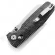 3.88" (9.86cm) closed. 2.88" (7.32cm) stonewash finish D2 tool steel blade. Black canvas micarta handle. Thumb stud. Pocket clip. Boxed.