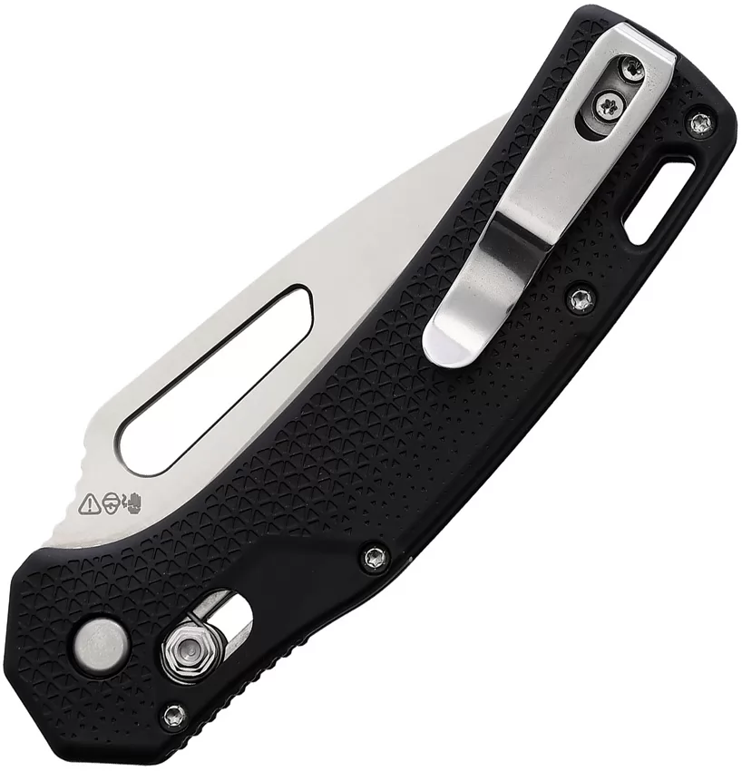 4" (10.16cm) closed. 3" (7.62cm) satin finish D2 tool steel tanto blade. Black nylon handle. Thumb pull. Lanyard hole. Pocket clip. Boxed.