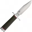 10.5" (26.67cm) overall. 5.5" (13.97cm) satin finish A2 tool steel blade. Green canvas micarta handle. Aluminum guard and pommel. Lanyard hole. Brown leather belt sheath. Boxed.