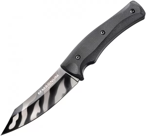 The Boker Magnum Tiger Lily Trapper BRK-BOM02RY088 offers a classic, dependable folding knife design with a striking twist. This knife features robust construction and a comfortable handle, ready for everyday carry and a variety of tasks. Its sharp blade ensures reliable performance, while the vibrant Tiger Lily pattern adds a touch of unique style to this practical tool. A worthwhile addition to any collection or a trustworthy companion for your outdoor adventures. 9.88" overall. 5" camo finish 440A stainless blade. Black G10 handle. Full tang. Black Kydex belt sheath. Boxed.