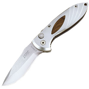 It's an utterly stunning modern design of Aluminum handle with the beautiful Walnut wood insert in the side panel of the 4.5 inch handle, and also incorporates a button lock mechanism with allows you to lock the blade safely in the open or closed position, leading to increased confidence during use.
