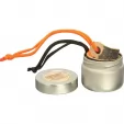 Dimensions: 15" x 1.5". One side of leather strop is loaded with black compound. Black loop end is shorter to accommodate smaller hands. The orange loop is longer for large hands or those wearing gloves. The loop not in hand can be attached over a post, hitch, tree etc. Comes in metal tin that can be used to make char cloth in an emergency.