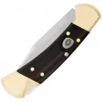 The Buck Knives 112 Auto, model BRK-BU112BRSA, provides the iconic 112 Ranger's functionality in an automatic package. Crafted with a satin-finished clip point blade made of durable S30V steel, this knife delivers exceptional edge retention and corrosion resistance. Deploy the blade rapidly with the push of a button, and rely on the sturdy lockback mechanism for secure and confident use. Featuring a handsome brown canvas Micarta handle, this automatic rendition of a classic offers both reliability and a timeless aesthetic for everyday carry or collecting. Automatic opening. 4.25" (10.8cm) closed. 3" (7.62cm) satin finish 420HC stainless clip point blade. Ebony wood handle. Brass bolster(s). Inlay shield. Black leather belt sheath.