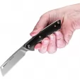 4.25" (10.8cm) closed. 3.25" (8.26cm) stonewash finish D2 tool steel cleaver style blade. Gray stonewash finish aluminum handle with black G10 inlay. Extended tang. Lanyard hole. Pocket clip. Boxed.