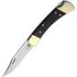$88.00$64.99Buck BU110 Item Description:Buck Folding Hunter. 4 7/8 closed lockback. 420HC stainless clip blade. Rich grain wood handles with brass bolsters. Black leather belt sheath." 4.88" closed. 420HC stainless clip point blade. Brass bolster(s). Genuine Crelicam Ebony handle. Black leather belt sheath. Boxed.