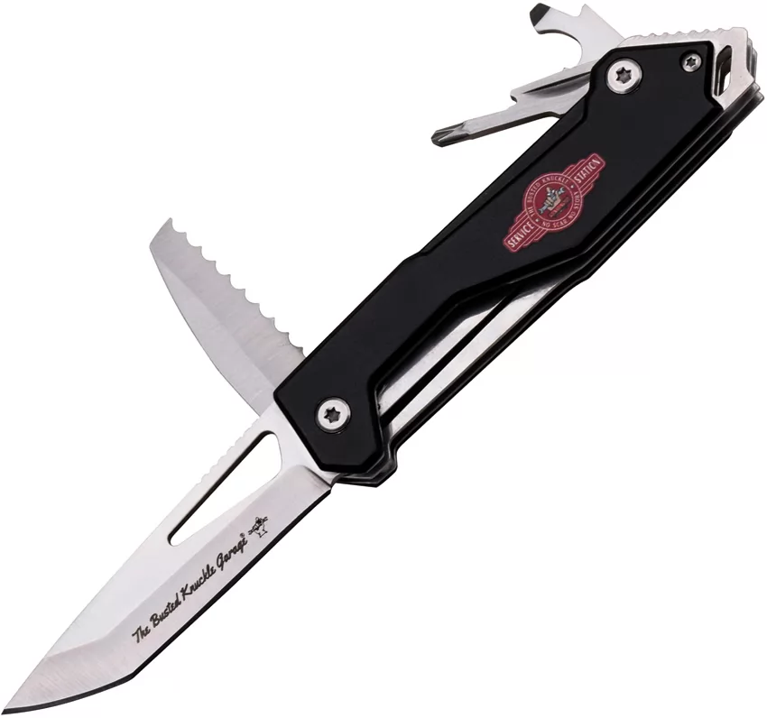 $35.95$12.06Busted Knuckle BKGMK002 Item Description:The Busted Knuckle BRK-BKGMK002 Multi-Tool equips you to handle nearly any task. This rugged and reliable tool boasts a durable construction, incorporating pliers, screwdrivers, a knife blade, saw, and bottle opener into a single, compact design. Tackle repairs, camping adventures, and everyday projects with this versatile companion, crafted to withstand the rigors of demanding use and offer years of dependable service. It's the ideal addition to your toolbox, glove compartment, or camping gear.