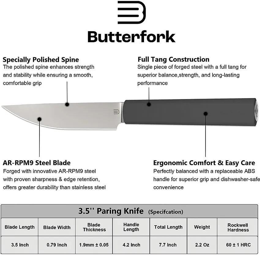 Butterfork Paring Knives AR-RPM9 BF01PKDG on sale now for $37.49. UPC code 850066904213. There are 8 in stock.