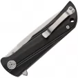 4.75" closed. 3.75" satin finish D2 tool steel blade. Black G10 handle. Extended tang. Lanyard hole. Pocket clip. Boxed.