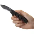 CRKT M21 Linerlock. 4 1/4 closed. Titanium nitride coated 8Cr14 stainless blade with Veff serrations, thumb stud and Carson Flipper. Black G-10 handles. Removable black finish stainless pocket clip. LAWKS safety system." 4.25" (10.8cm) closed. 3.13" (7.95cm) black TiNi coated Veff serrated 8Cr14MoV stainless spear point blade. Black G10 handle. Extended tang. Thumb stud. Pocket clip. AutoLAWKS safety. Boxed.