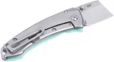3.88" (9.86cm) closed. 2.75" (6.99cm) stonewash finish 14C28N Sandvik stainless blade. Aqua blue G10 handle with stonewash finish stainless back handle. Thumb stud. Lanyard hole. Pocket clip. Designed by Lucas Burnley. Boxed.