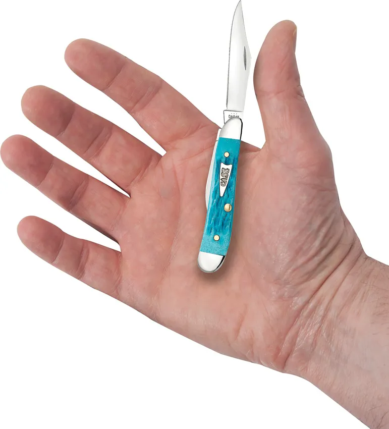 Case Cutlery CA50644 Item Description:The Case Cutlery Peanut in Sky Blue (model BRK-CA50644) offers a classic, compact folding knife perfect for everyday carry. This pocket-sized essential features durable Chrome Vanadium blades and a delightful Sky Blue jigged bone handle, making it both functional and stylish. Enjoy the reliable performance and timeless design that Case is known for with this beautiful, collectible knife. It's a great addition to any collection or a dependable companion for daily tasks.