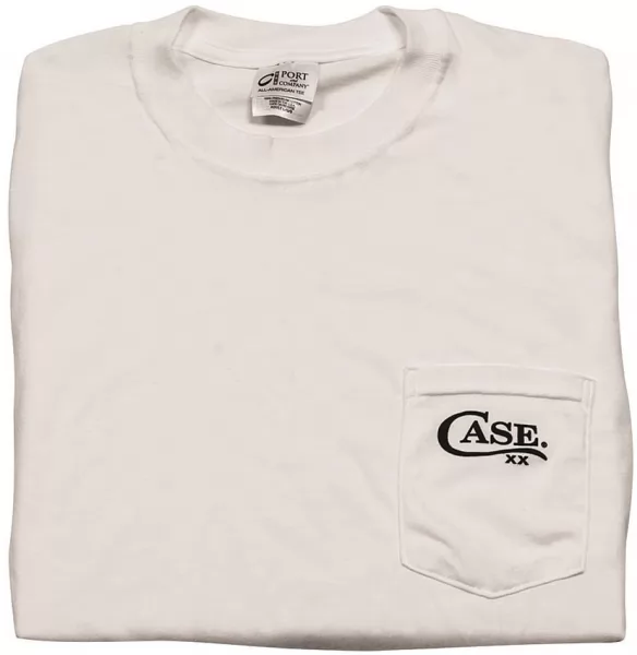 The Case Cutlery Pocket T-Shirt in White, Small (model BRK-CA52492), offers a comfortable and classic way to display your appreciation for a heritage brand. This shirt, crafted from soft, breathable material, features a subtle pocket detail on the chest. A perfect addition to any casual wardrobe, this tee provides lasting quality and style with a nod to iconic craftsmanship. 100% preshrunk cotton. Front pocket with Case logo. Color: White. Size: Small. Bulk packed.