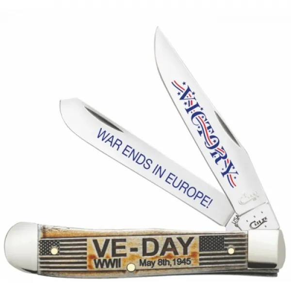 $117.77Case 11951 Item Description:The Case Knives SMOOTH NAT BONE TRAP V-E DAY model 11951 is a striking addition to any collection or everyday carry. This knife features smooth natural bone handles that are reminiscent of a bygone era, commemorating V-E Day with subtle, tasteful embellishments. The Tru-Sharp™ surgical steel blades offer exceptional durability and a keen edge, ready for any task. Expertly crafted by Case Knives, this model embodies classic American quality and design, making it a reliable and treasured piece for generations.