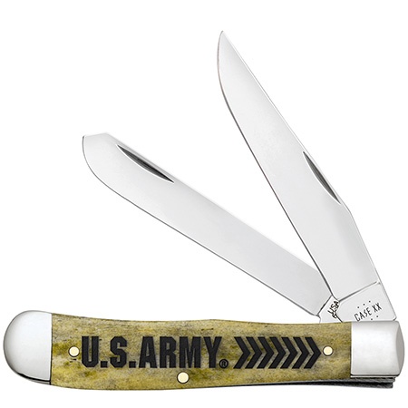 $81.65Case 15056 Item Description:The Case Knives US ARMY OLIVE GRN BN TRAPPER (Model 15056) embodies American craftsmanship and military pride. This classic Trapper design features durable Olive Green Bone handles adorned with the US Army emblem, making it a treasured collectible or dependable everyday carry. Two Tru-Sharp surgical steel blades offer versatility for various cutting tasks. Built to Case's exacting standards, this knife delivers lasting quality and a tribute to the brave men and women of the US Army.