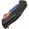Assisted opening. 5" (12.7cm) closed. 4" (10.16cm) stainless blade. ABS handle. Extended tang. Pocket clip. American flag and Liberty Rose blade and handle artwork. Boxed.