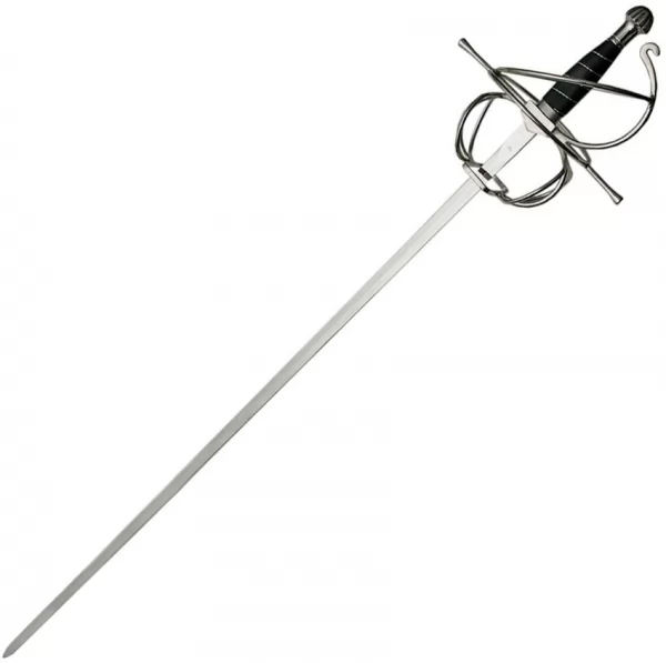 The China Made knives BRK-CN926849 Rapier is a testament to refined swordsmanship, designed for display or practice. This elegant blade is crafted for balance and responsiveness, offering a feel reminiscent of historical duels. Its slender profile culminates in a sharp point, while the included scabbard provides safe storage and a touch of authenticity. Own a piece of history, meticulously created by China Made knives. 43.5" (110.49cm) overall. 36.75" (93.35cm) stainless blade. Wire wrapped leather handle with D-guard. Black leather scabbard. Boxed.
