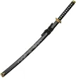 Satin finish carbon steel blade. Black cord wrapped handle. Includes: 39.5" overall Samurai; 31.25" overall Wakizashi; 21.5" overall Tanto. ABS tsuba with dragon etching. Includes wooden display stand. Black ABS scabbard. Boxed.