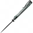 4.5" (11.43cm) closed. 3.5" (8.89cm) black stonewash finish partially serrated 14C28N Sandvik stainless blade. Jade G10 handle. Extended tang. Pocket clip. Black nylon zippered storage case. Boxed.