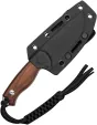 6.88" (17.48cm) overall. 3.25" (8.26cm) satin finish 14C28N Sandvik stainless drop point blade. Brown wood handle. Full tang. Lanyard hole. Braided paracord lanyard. Black Kydex belt sheath. Boxed.