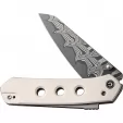 4.5" (11.43cm) closed. 3.5" (8.89cm) Damascus steel blade. Ivory G10 handle. Thumb stud. Pocket clip. Black nylon zippered storage case. Boxed.