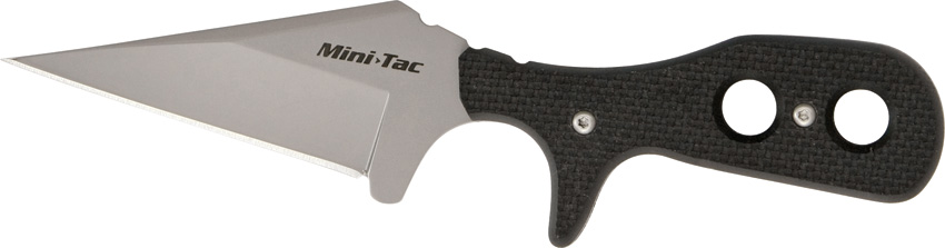 Cold Steel Mini Tac. Kiridashi. 6 overall. 3" AUS-8A stainless blade. Full tang. Black G-10 handles. Secure-Ex neck sheath."