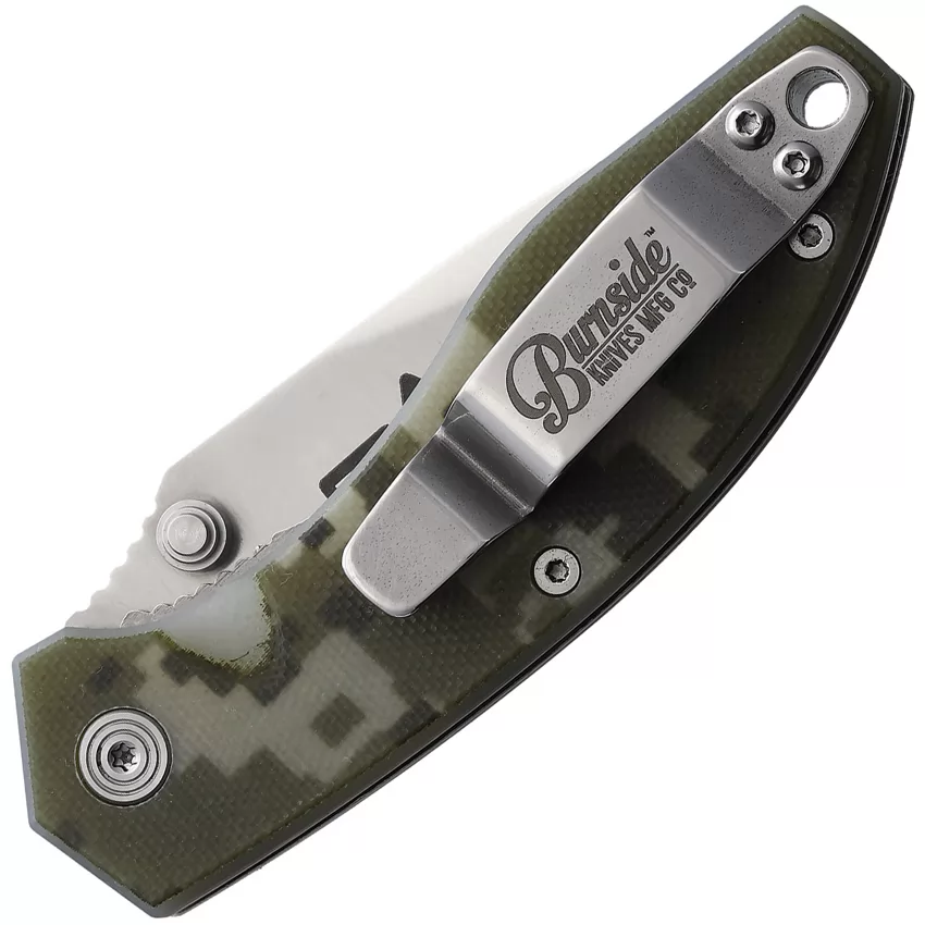 $80.00$54.92DMOS Collective DMS04CMO Item Description:The DMOS Collective Burnside BRK-DMS04CMO Linerlock delivers rugged utility in a compact, everyday carry knife. Crafted for resilience, this folding knife features durable construction and a secure linerlock mechanism, ensuring reliable performance when you need it most. The blade's design offers versatility for various cutting tasks, while its comfortable grip provides optimal control. With its camouflage pattern and streamlined profile, the Burnside is a dependable companion for outdoor adventures and daily tasks alike.