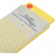 Dimensions: 8" x 2.63". Grit: Extra extra fine l Fine. Boxed with hanging tab.
