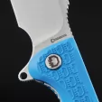 The Daggerr Knives Fielder Linerlock Blue (BRK-DGRFDFBLSW) delivers rugged reliability in a striking package. This knife boasts a durable D2 steel blade, offering exceptional edge retention and wear resistance. Its smooth, one-handed opening action and secure liner lock mechanism provide confident operation. The contoured blue G10 handle scales ensure a comfortable and secure grip, even in demanding conditions. The Fielder is built for everyday tasks and outdoor adventures alike, making it a valuable addition to any collection. 4.63" (11.76cm) closed. 3.5" (8.89cm) stonewash finish 8Cr14MoV stainless blade. Blue textured FRN handle. Extended tang. Glass breaker. Pocket clip. Boxed.