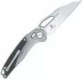 4.75" (12.07cm) closed. 3.75" (9.53cm) satin finish Bohler M390 stainless blade. Gray titanium handle with carbon fiber inlay. Thumb pull. Extended tang. Pocket clip. Boxed.