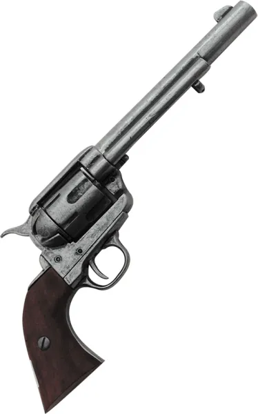 $78.00$69.98Denix 1191G Item Description:Denix Pistol Replica U.S.A. M1873 Cavalry Pistol Replica. 12 1/2 overall. Wood grips. Antique silver finish." Single Action Antique Replica. Antique gray gun metal finish. 12 1/2" overall. Wood grips. These replicas are intended for collection, display and decoration only. The locks on the replica firearms are mechanically functional but are completely safe and non-fireable, requiring no federal license to buy, sell or possess them. There may be local restrictions concerning replicas of "modern firearms: and these should be checked. Replica edged weapons are not intended for use and cannot take a cutting edge.