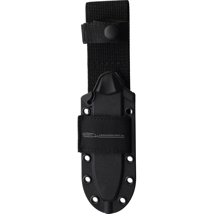 9.25" (23.5cm) overall. 5" (12.7cm) black coated 1095 Cro-Van carbon steel drop point blade. Black Ultramid handle. Full tang. Lanyard hole. Celcon sheath. Black MOLLE compatible belt sheath. Boxed.