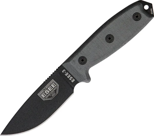 $189.95$131.25ESEE RC3PMB Item Description:ESEE RC-3. 8 1/4 overall. 3 7/8" "Super Tuff" black textured powder coated 1095 carbon steel blade. Full tang. Gray micarta handles. Molded coyote brown Kydex® sheath with paracord, cord lock, MOLLE lock atttachments and boot clip." Model 3. 8.25" (20.96cm) overall. 3.75" (9.53cm) black powder coated 1095HC steel blade. Black linen micarta handle. Glass breaker. Lanyard hole. Full, extended tang. Coyote brown molded plastic sheath.