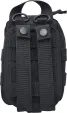 Includes: Black sharpie; SWAT-T tourniquet; Trauma dressing, 4"; (3) BZK antiseptic wipes; (3) Burn gel packets; (16) Bandage strips, 1" x 3"; Chest seal, twin pack; QuikClot gauze, 4" x 4"; EMT shears, 5.5"; (2) Nitrile gloves. Removable velcro-panel on the back with MOLLE straps. Two adjustable belt loops to accommodate any belt size up to 3 thick. Color: Black. Bulk packed.