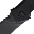 5.25" (13.34cm) closed. 3.63" (9.22cm) black MIL-C-13924 burnished Bohler N690 stainless blade. Black textured aluminum handle. Thumb stud. Extended tang. Pocket clip. Glass breaker. Boxed.