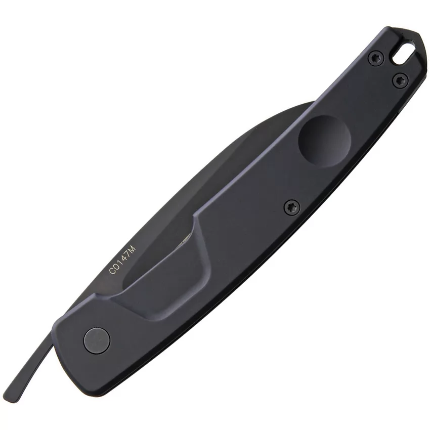 5.75" closed. 4" black Mil-Spec coated Bohler N690 stainless Wharncliffe blade. Black anodized aluminum handle. Glass breaker. Lanyard hole. Extended tang. Boxed.