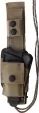 8.88" (22.56cm) overall. 4.25" (10.8cm) D2 tool steel blade. Black G10 handle. Full, extended tang. Lanyard hole. EXP DARK finish blade. Tan and black Kydex and nylon belt sheath can be disassembled and adapted for both left and right handed users. It is also equipped with a mini pouch with M. O. L. L. E. System containing a two-sided sharpening stone and a fire steel. Boxed.