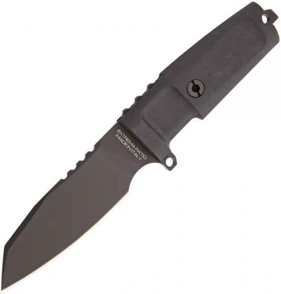 Extrema Ratio EX084TSKCBL Item Description:Unleash the potential of the Task C Fixed Blade Black! From Extrema Ratio, this tactical knife boasts a robust CPM3V stainless steel blade with a durable black finish. Its ergonomic R.H.A. (Rubber Handle Aluminum) scales provide exceptional grip, while the stainless steel thumb ramp enhances usability. The knife's sleek black paracord sheath offers versatility with multiple carry options. Whether for tactical operations or outdoor adventures, the Task C Fixed Blade Black is the epitome of reliability and performance. 8 3/8" overall. 3 1/2" black finish Bohler N690 stainless modified tanto blade. Integral finger guard with lashing hole. Blade is flat ground on both sides. Black Forprene handle. Heavy duty tip with enlarged lanyard hole. Deluxe molded black polymer belt sheath.