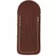 Dimensions: 4" x 1" x 0.25". Medium (400) grit. Groove for fishhooks. Brown leather pouch. Clam packed.