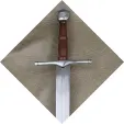 Factory X's BRK-FXSN85262 sword model delivers unparalleled craftsmanship and performance. This meticulously designed weapon boasts a high-carbon steel blade, offering exceptional balance and durability. Its intricately detailed guard and pommel, coupled with a comfortable, wrapped grip, provide a secure and commanding hold. Perfect for collectors, martial artists, and enthusiasts, the BRK-FXSN85262 embodies the spirit of the warrior and provides a stunning centerpiece to any collection. 42.5" (107.95cm) overall. 33.5" (85.09cm) satin finish carbon steel blade. Brown leather wrapped handle. Stainless guard and pommel. Brown leather scabbard. Bulk packed.