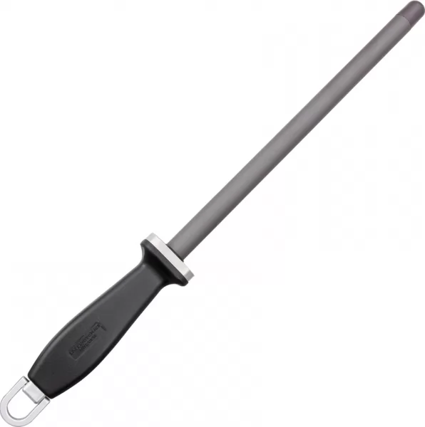 The Fallkniven FNC10 Ceramic Sharpener is a compact and reliable tool crafted for maintaining the keen edge of your knives. Featuring a durable ceramic rod, this sharpener effectively hones blades, restoring sharpness quickly and easily. Its portable design makes it ideal for field use, while the ergonomic handle ensures a secure and comfortable grip. Keep your Fallkniven (or any other fine blade) performing at its best with this essential sharpening companion. 16 1/8" overall. 10 3/4" black ceramic rod. Black polyamide handle. Silver composition hanger ring.